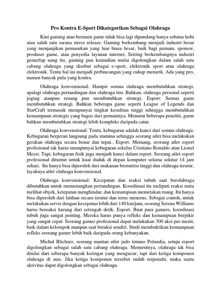 Kasus puisi yang dibacakan oleh rahmawati menimbulkan pro dan kontra di kalangan masyarakat. Waktu yang dihabiskan untuk bermain game komputer. Semenjak video games pertama diluncurkan, hal ini telah memicu begitu banyak opini dari sisi pro dan juga kontra. Kalimat pendapat pendukung/pro dan penentang/kontra. Sekarang anda tahu bagaimana menulis esai tentang pro dan kontra internet dalam bahasa inggris.